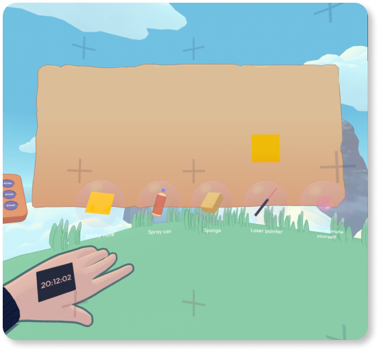 • Tool icons blend into the environment, hindering visibility for visually impaired users; access via hand gestures is inconsistent.