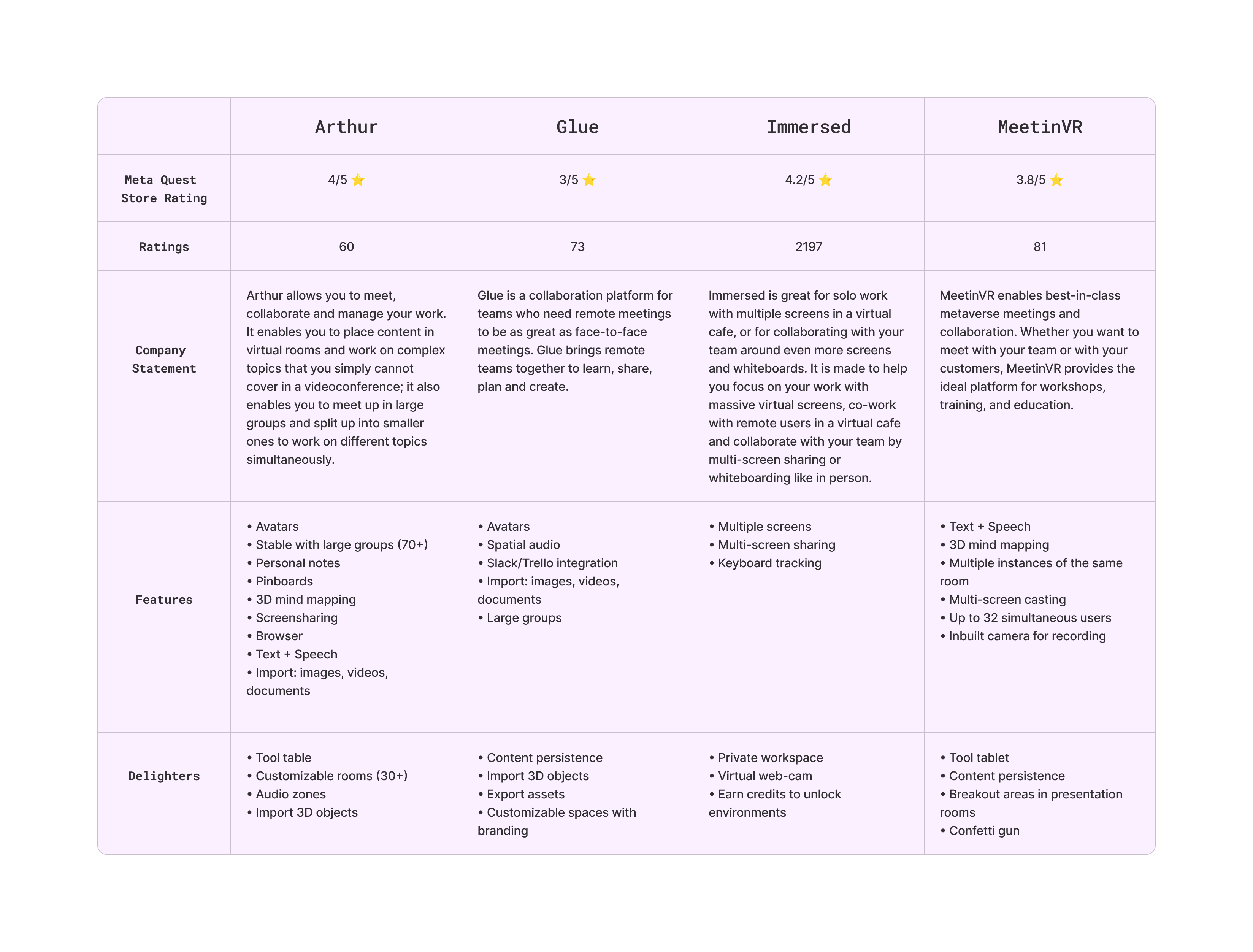 Users’ goals, pain points, and preferences for productivity and teamwork in VR, and how Naer compares to existing tools like Miro, for users with different levels of familiarity with VR and remote working.